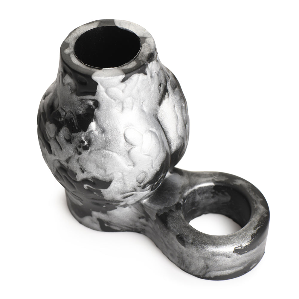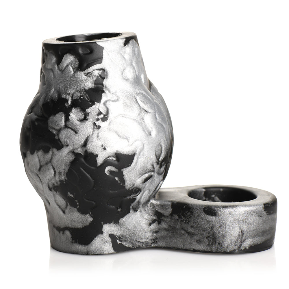 Become the silver wolf of your partner's dreams or nightmares with this Night Prowler sleeve and ball stretcher! It fits over your shaft adding pressure to your rod while also wrapping around your balls and stretching them! Made out of premium phthalate-free body-safe silicone it is best used only with water-based lubricants only. Enhance your playtime and the sensations by giving yourself a rod that gets thicker by adding these two bulging wolf-knots at the base! It stays in place due to the ball stretcher wrapped around your family jewels and essentially tugs your balls every time your partner goes deep! Enjoy adding this to your kinky cosplay and fantasy roleplay while indulging with your partner! After use wash it with warm water and mild soap then rinse it off and spray it with a toy cleaner. Pat dry and store in a cool dark place.