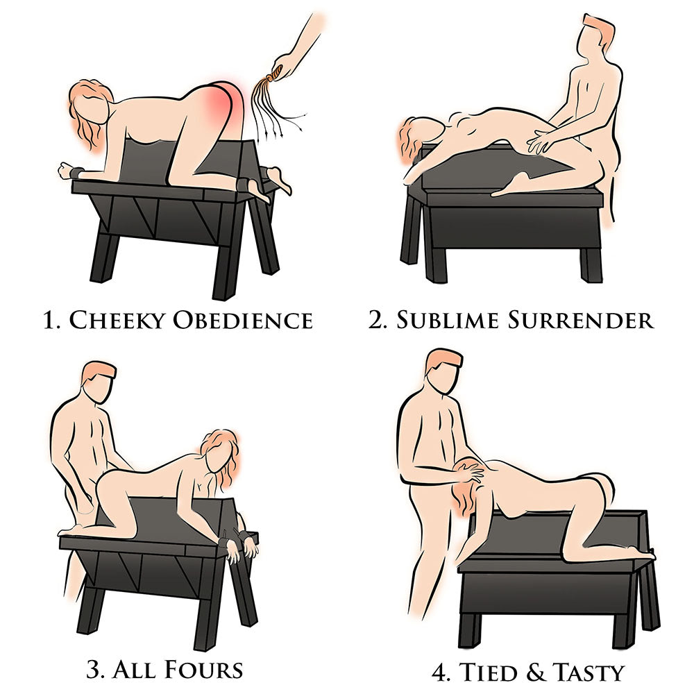 Set up your scene and then have your partner climb onto the bench. Cuff their wrists and ankles then attach them to the bench. Experiment with sensation while blindfolding them. Use Wartenberg wheels feathers ice or wax to heighten the experience. As they're on the bench bare skin touching the smooth faux leather give them some spankings to warm them up and get the blood flowing before harder impact play. Then it's time to make use of their excitement as their sensations have heightened. Use toys hands or your own devices on their most sensitive spots while they are bent over or seated. As they reach the peak of pleasure their thighs dripping wet you can both enjoy the satisfaction that comes next!